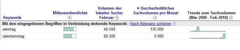 Google Keyword Suche für Vatertag und Valentienstag